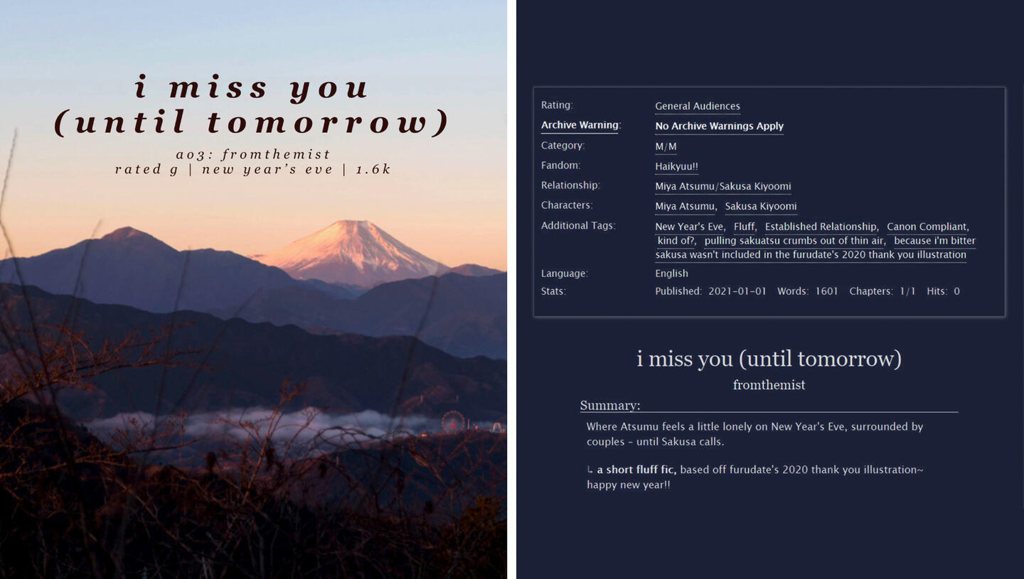 | Omakase: A Miya Osamu Zine | Creation | Writer / Chef | SFW |